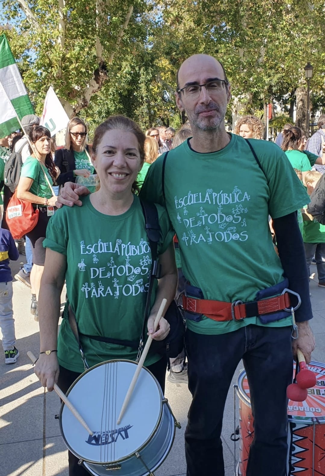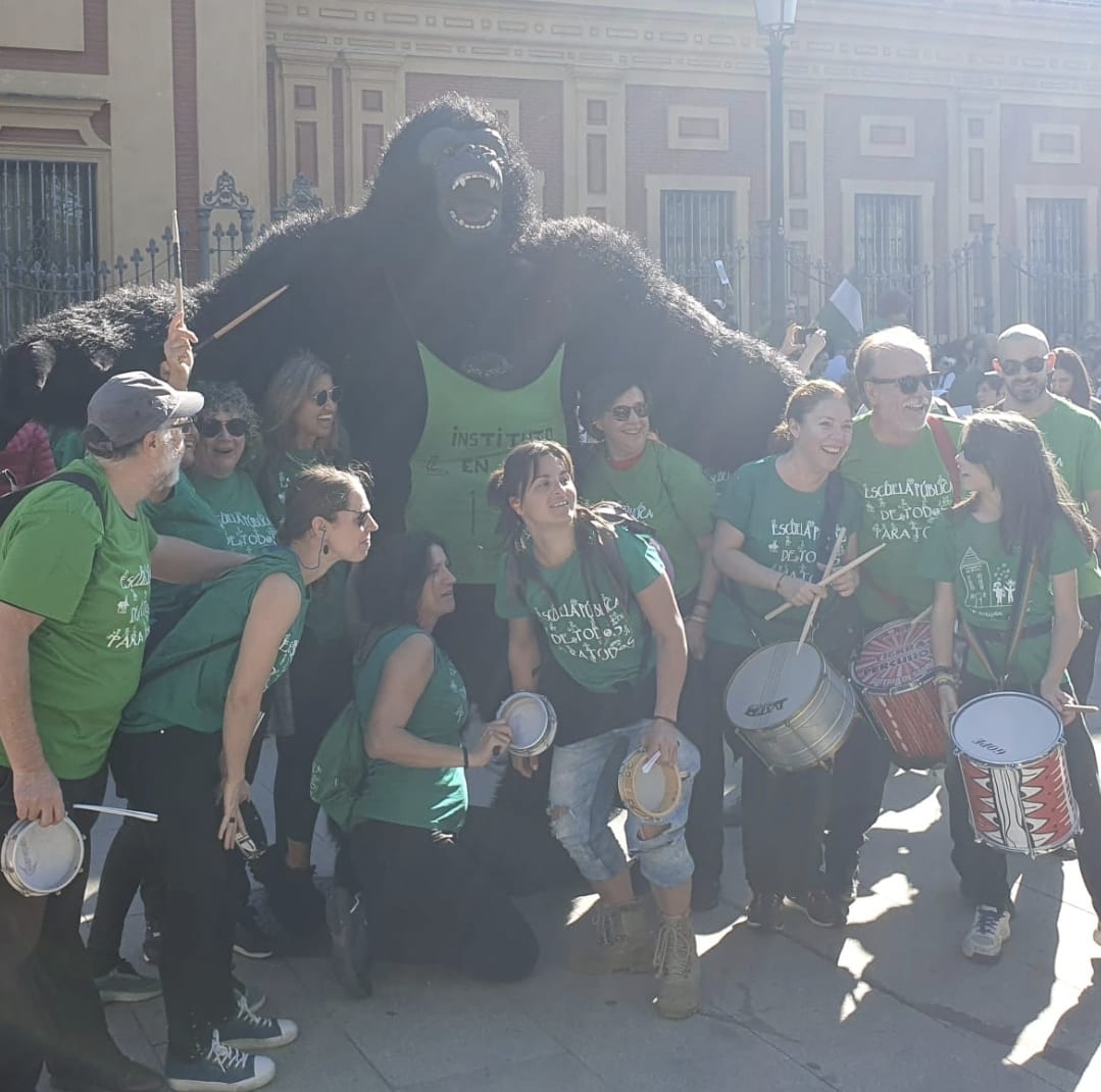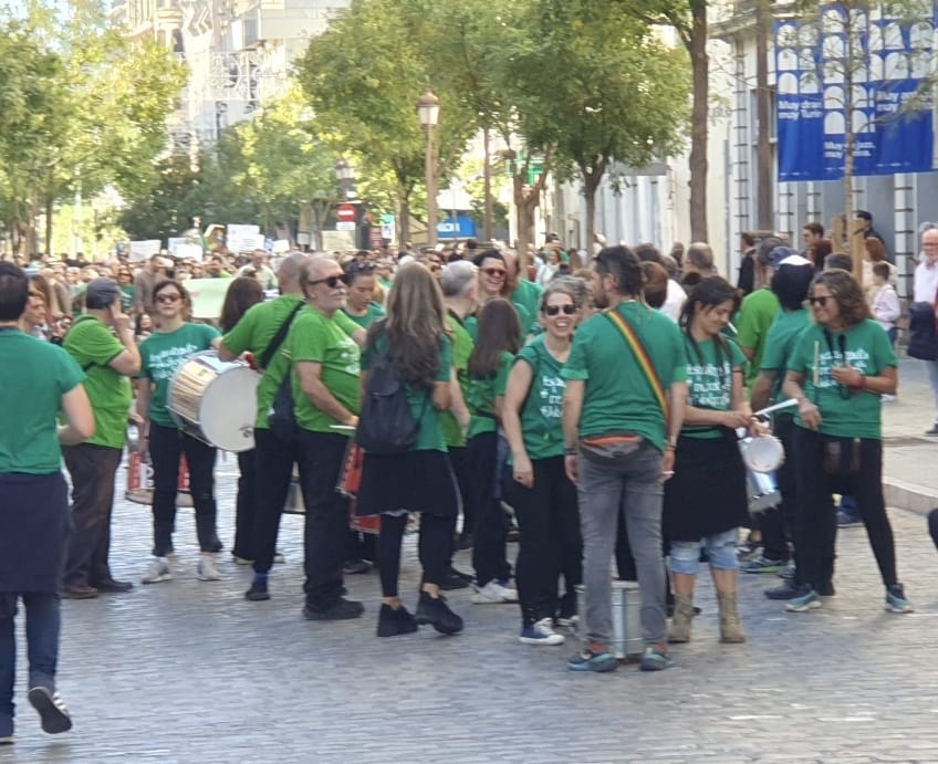 «Y, cómo no, el gran papel desinteresado de la batucada , que puso ritmo a la gran movilización. Esperamos que el sonido de sus tambores haya llegado hasta la sede del gobierno andaluz y que escuchen bien alto y claro las reivindicaciones de la Marea Verde»