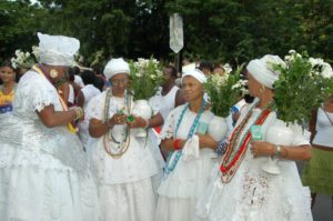 Después de la ceremonia religiosa, precedida por una misa cristiana, músicos, capoeiras y amigos de la casa formaban un “pagode” con guitarras, panderos, ganzás y mucho samba, finalizando siempre con una ceremonia de candomblé.